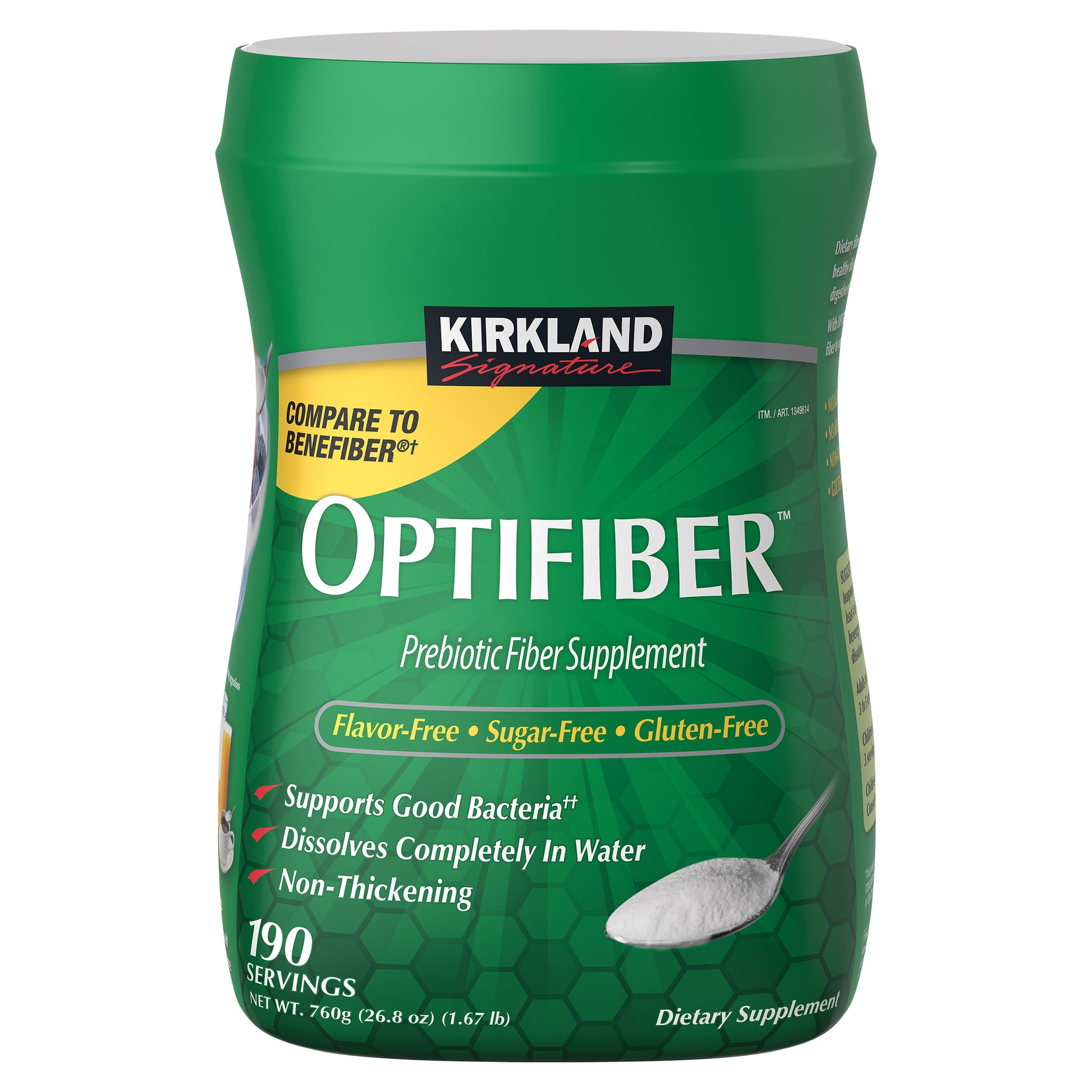 Kirkland Signature OPTIFIBER, 26.8 Ounces 190 Servings Natural Fiber Supplement Completely Dissolves in Water Non-Thickening and Grit-Free 190 Servings