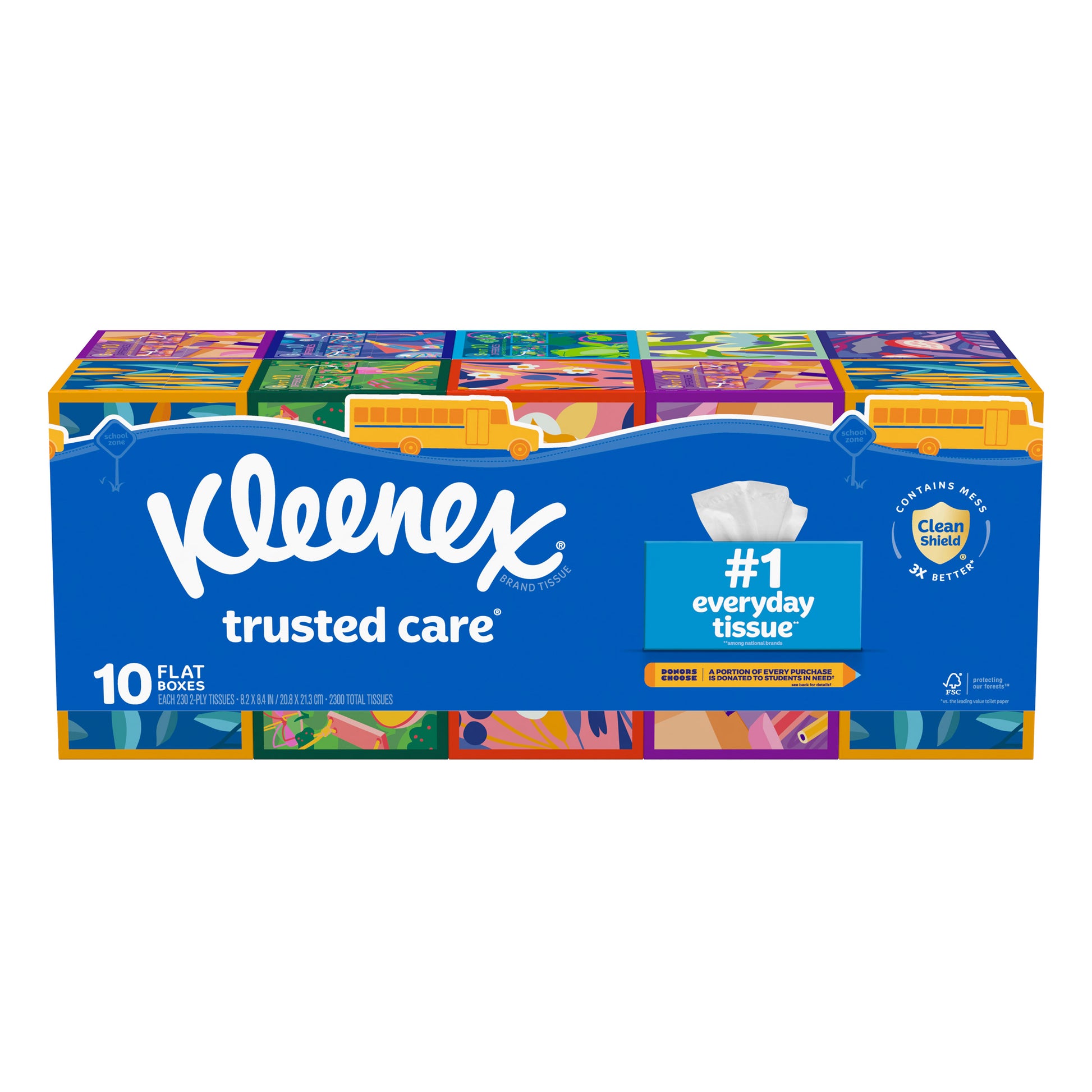 Kleenex Trusted Care Facial Tissue, 2-Ply, 230-count, 10-pack Flat Box